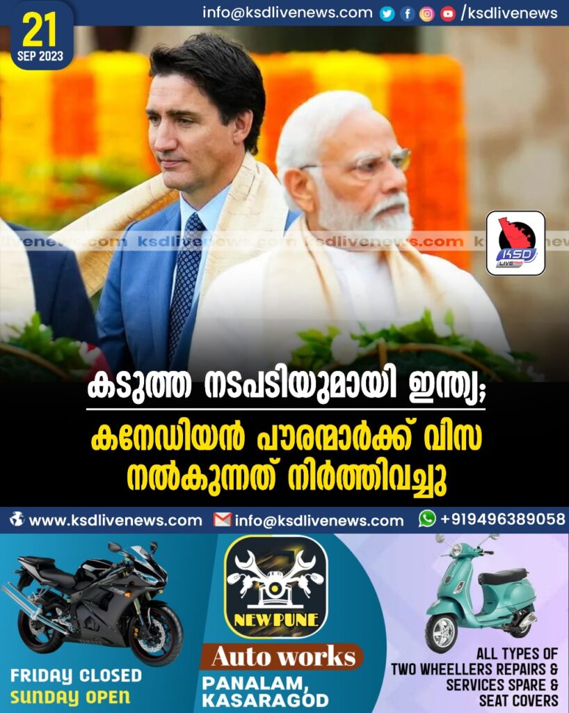 കടുത്ത നടപടിയുമായി ഇന്ത്യ; കനേഡിയന് പൗരന്മാര്ക്ക് വിസ നല്കുന്നത് നിര്ത്തിവച്ചു
