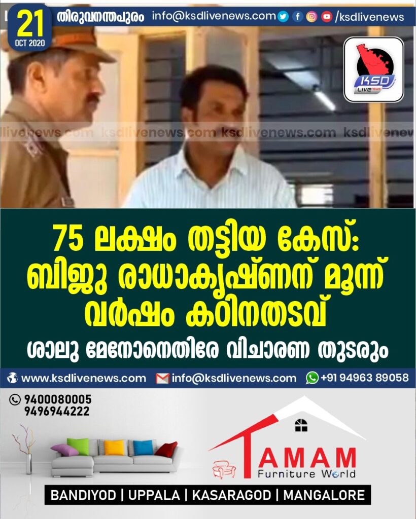 75 ലക്ഷം തട്ടിയ കേസ്: ബിജു രാധാകൃഷ്ണന് മൂന്ന് വര്‍ഷം കഠിനതടവ്; ശാലു മേനോനെതിരേ വിചാരണ തുടരും