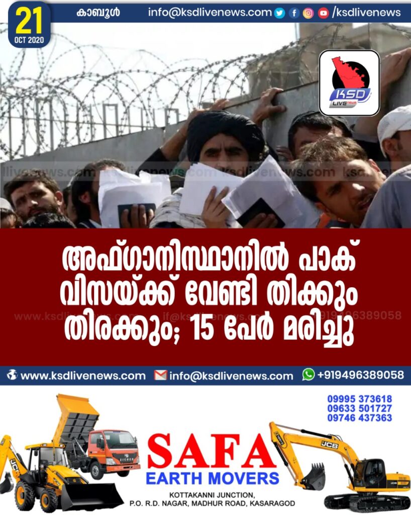 അഫ്ഗാനിസ്ഥാനിൽ പാക് വിസയ്ക്ക് വേണ്ടി തിക്കും തിരക്കും; 15 പേർ മരിച്ചു