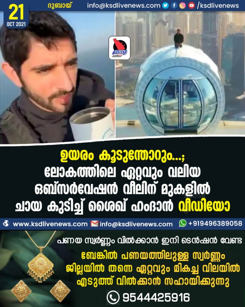 ഉയരം കൂടുന്തോറും…; ലോകത്തിലെ ഏറ്റവും വലിയ ഒബ്സര്വേഷന് വീലിന് മുകളില് ചായ കുടിച്ച് ശൈഖ് ഹംദാന്, വീഡിയോ