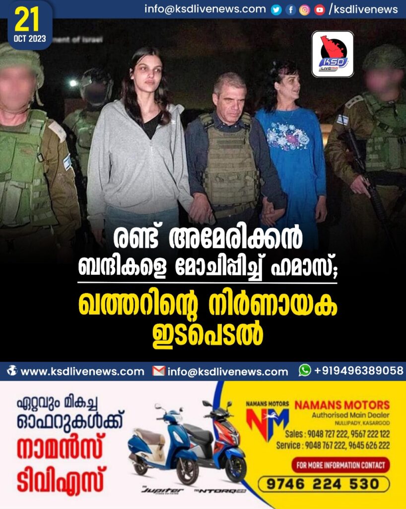രണ്ട് അമേരിക്കന് ബന്ദികളെ മോചിപ്പിച്ച് ഹമാസ്; ഖത്തറിന്റെ നിര്ണായക ഇടപെടല്