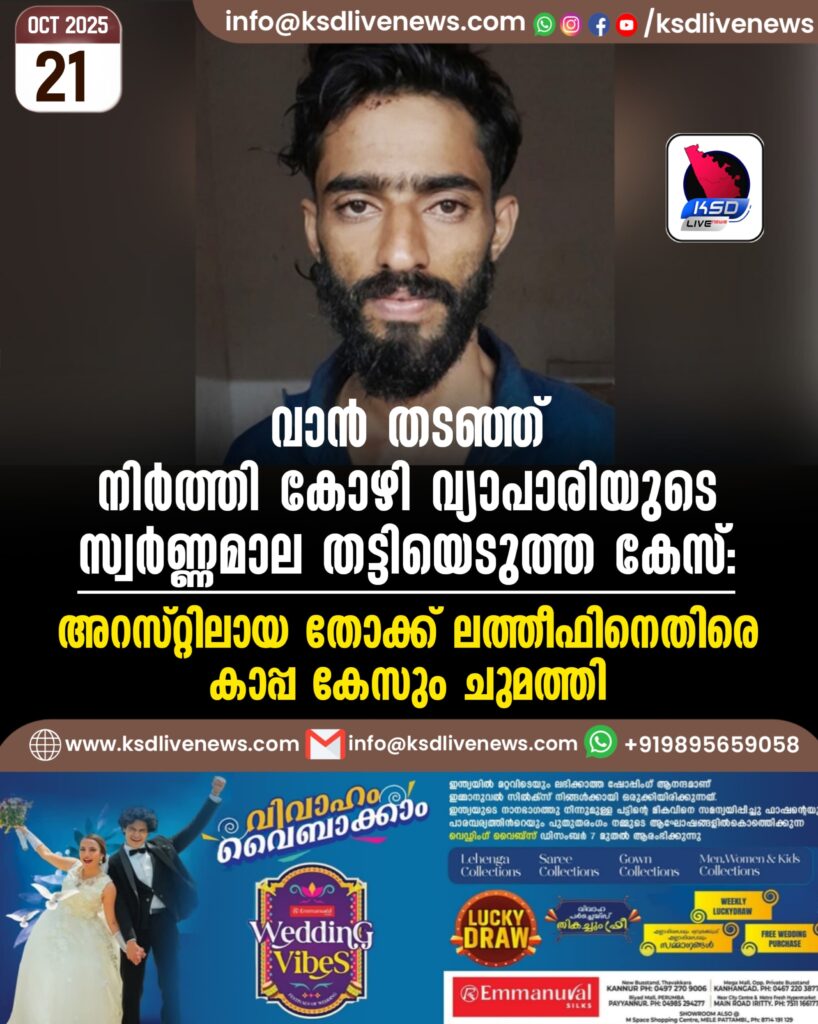 വാൻ തടഞ്ഞ് നിർത്തി കോഴി വ്യാപാരിയുടെ സ്വർണ്ണമാല തട്ടിയെടുത്ത കേസ്: അറസ്റ്റിലായ തോക്ക് ലത്തീഫിനെതിരെ കാപ്പ കേസും ചുമത്തി
