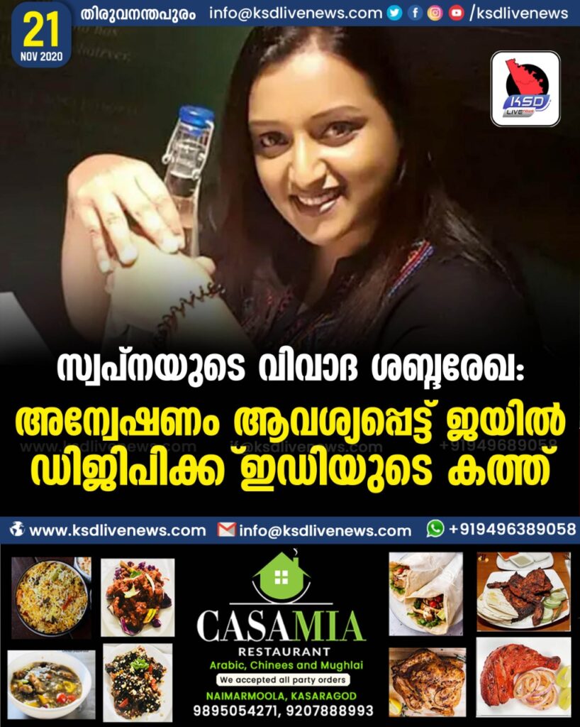 സ്വപ്നയുടെ വിവാദ ശബ്ദരേഖ : അന്വേഷണം ആവശ്യപ്പെട്ട് ജയിൽ ഡിജിപിക്ക് ഇഡിയുടെ കത്ത്