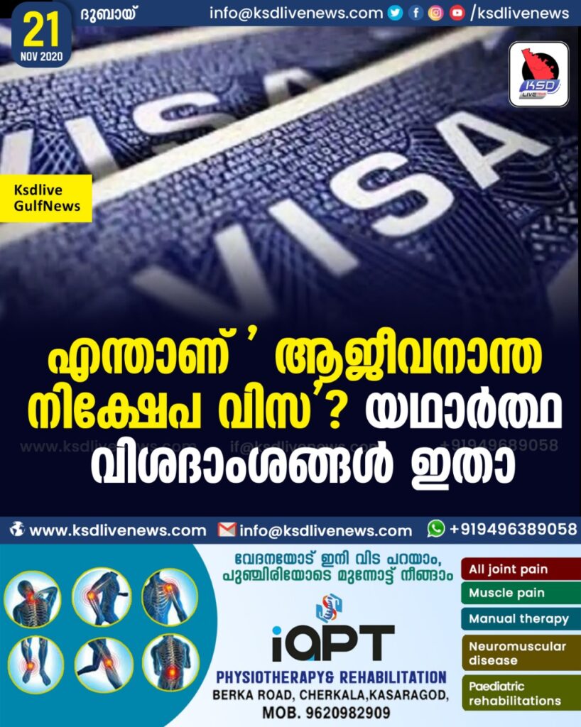 എന്താണ് ‘ ആജീവനാന്ത നിക്ഷേപ വിസ ‘ ? യഥാർത്ഥ വിശദാംശങ്ങൾ ഇതാ