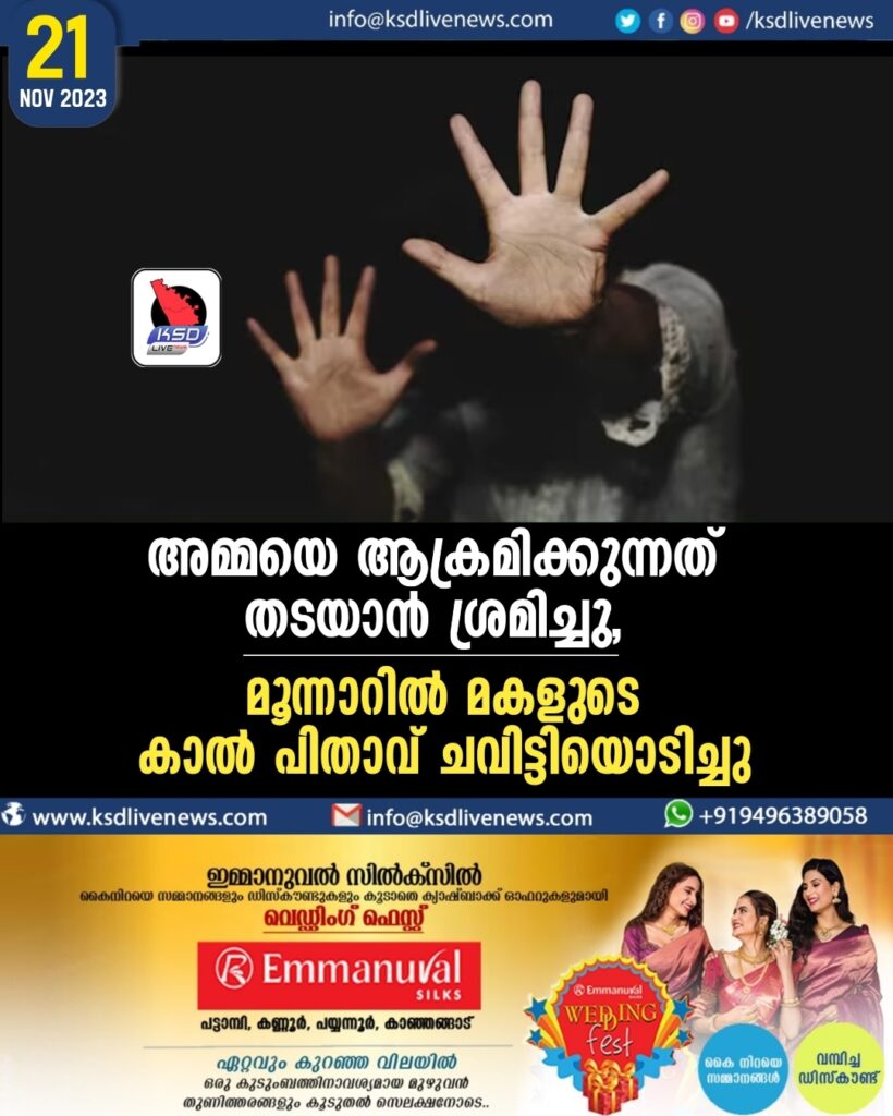 അമ്മയെ ആക്രമിക്കുന്നത് തടയാൻ ശ്രമം, മൂന്നാറിൽ മകളുടെ കാൽ പിതാവ് ചവിട്ടിയൊടിച്ചു