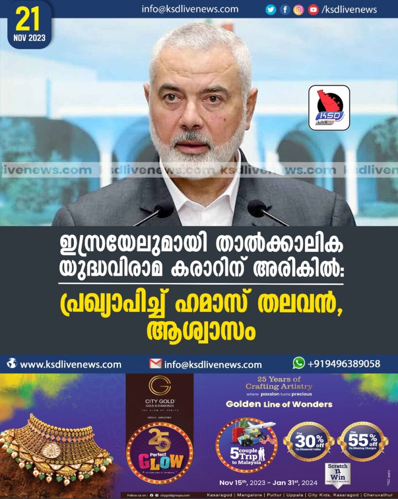 ‘ഇസ്രയേലുമായി താൽക്കാലിക യുദ്ധവിരാമ കരാറിന് അരികിൽ’: പ്രഖ്യാപിച്ച് ഹമാസ് തലവൻ, ആശ്വാസം