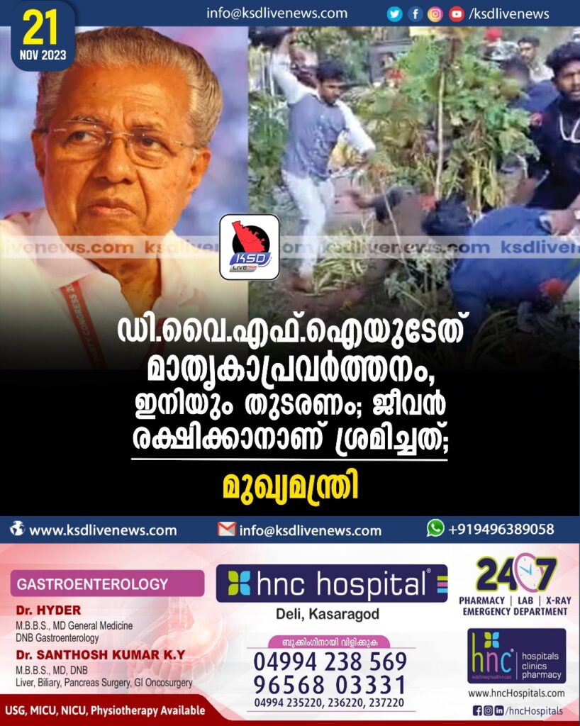 ഡി.വൈ.എഫ്.ഐയുടേത് മാതൃകാപ്രവര്ത്തനം, ഇനിയും തുടരണം; ജീവന് രക്ഷിക്കാനാണ് ശ്രമിച്ചത്- മുഖ്യമന്ത്രി