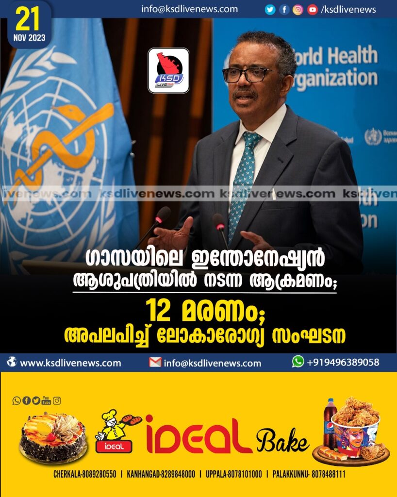 ഗാസയിലെ ഇന്തോനേഷ്യന്‍ ആശുപത്രിയില്‍ നടന്ന ആക്രമണം; 12 മരണം; അപലപിച്ച്‌ ലോകാരോഗ്യ സംഘടന