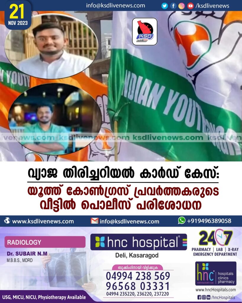 വ്യാജ തിരിച്ചറിയല്‍ കാര്‍ഡ് കേസ്: യൂത്ത് കോണ്‍ഗ്രസ് പ്രവര്‍ത്തകരുടെ വീട്ടില്‍ പൊലീസ് പരിശോധന
