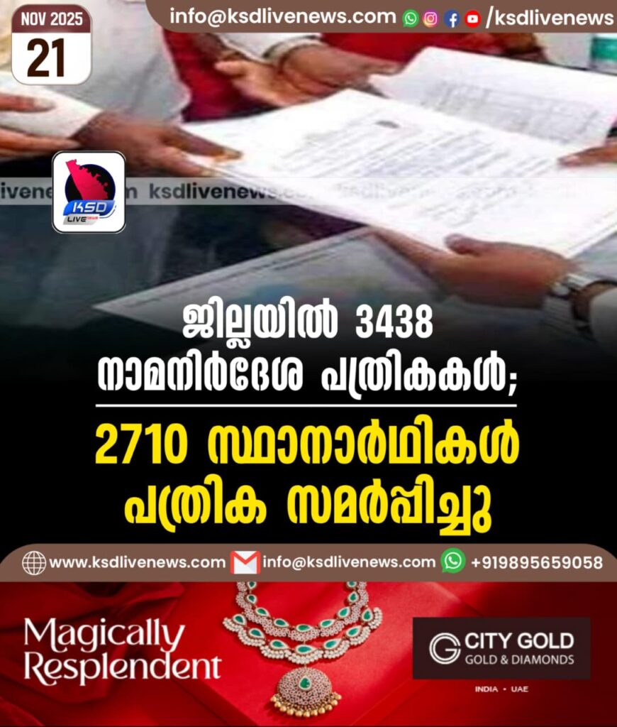ജില്ലയിൽ 3438 നാമനിർദേശ പത്രികകൾ: 2710 സ്ഥാനാർഥികൾ