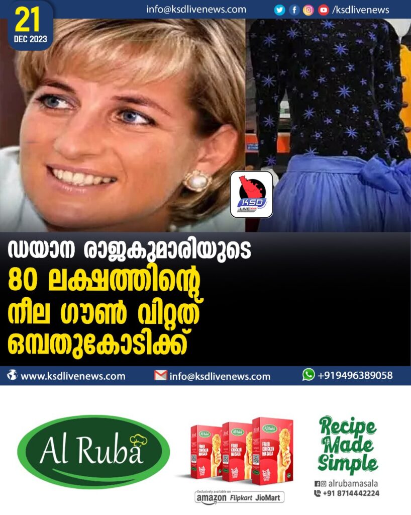 ഡയാന രാജകുമാരിയുടെ 80 ലക്ഷത്തിന്‍റെ നീല ഗൗണ്‍ വിറ്റത് ഒമ്പതുകോടിക്ക്