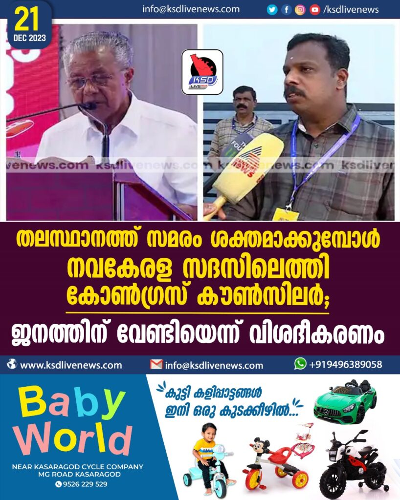 തലസ്ഥാനത്ത് സമരം ശക്തമാക്കുമ്പോൾ നവകേരള സദസിലെത്തി കോണ്‍ഗ്രസ് കൗൺസിലർ; ജനത്തിന് വേണ്ടിയെന്ന് വിശദീകരണം