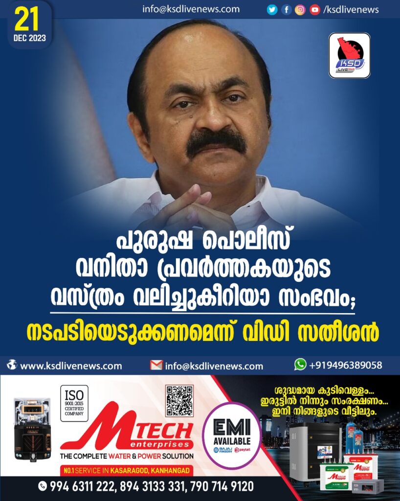 പുരുഷ പൊലീസ് വനിതാ പ്രവർത്തകയുടെ വസ്ത്രം വലിച്ചുകീറിയാ സംഭവം; നടപടിയെടുക്കണമെന്ന് വിഡി സതീശൻk