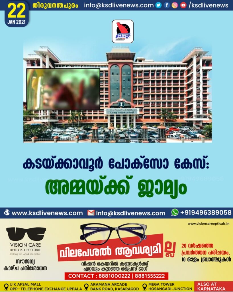 കടയ്ക്കാവൂര് പോക്സോ കേസ്: അമ്മയ്ക്ക് ജാമ്യം