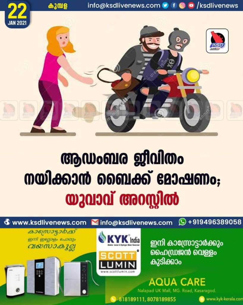 ആഡംബര ജീവിതം നയിക്കാൻ ബൈക്ക് മോഷണം: യുവാവ് അറസ്റ്റിൽ