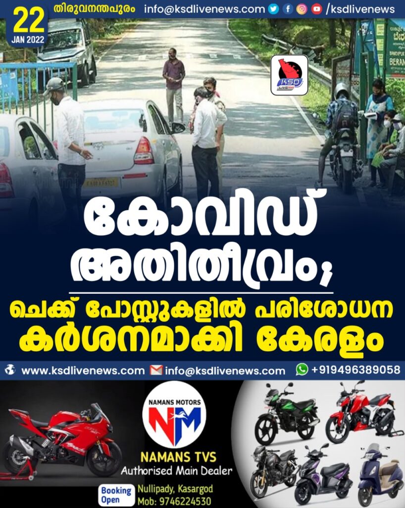 കോവിഡ് അതിതീവ്രം, ചെക്ക് പോസ്റ്റുകളില് പരിശോധന കര്ശനമാക്കി കേരളം