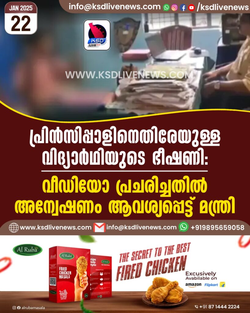 പ്രിൻസിപ്പാളിനെതിരേയുള്ള വിദ്യാർഥിയുടെ ഭീഷണി: വീഡിയോ പ്രചരിച്ചതിൽ അന്വേഷണം ആവശ്യപ്പെട്ട് മന്ത്രി