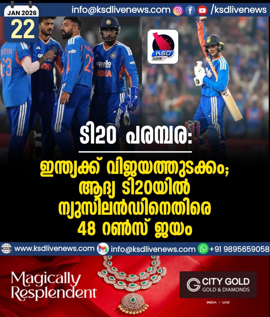 ടി20 പരമ്പര: ഇന്ത്യക്ക് വിജയത്തുടക്കം; ആദ്യ ടി20യിൽ ന്യുസിലൻഡിനെതിരെ 48 റൺസ് ജയം