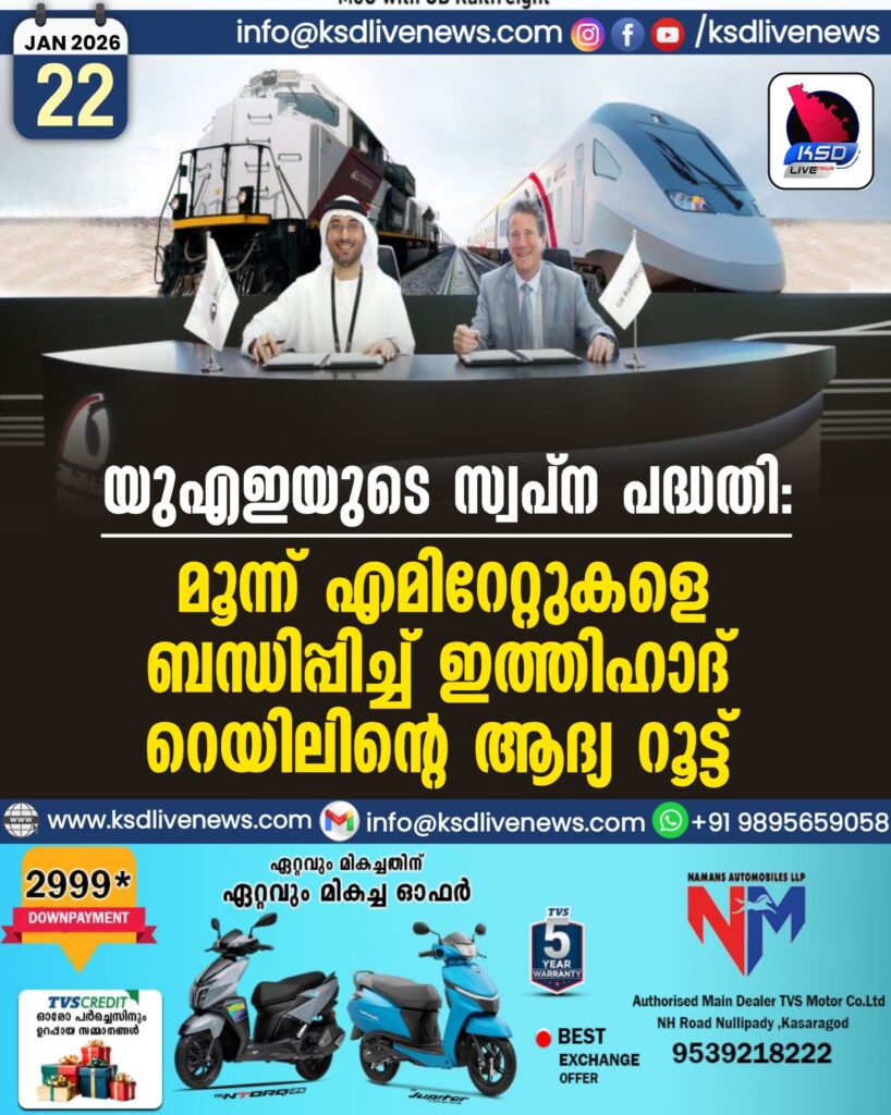 യുഎഇയുടെ സ്വപ്ന പദ്ധതി; മൂന്ന് എമിറേറ്റുകളെ ബന്ധിപ്പിച്ച് ഇത്തിഹാദ് റെയിലിന്റെ ആദ്യ റൂട്ട്