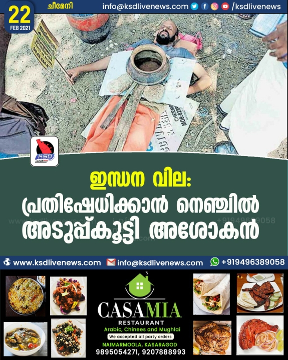 ഇന്ധനവില: പ്രതിഷേധിക്കാൻ നെഞ്ചിൽ അടുപ്പ്കൂട്ടി അശോകൻ