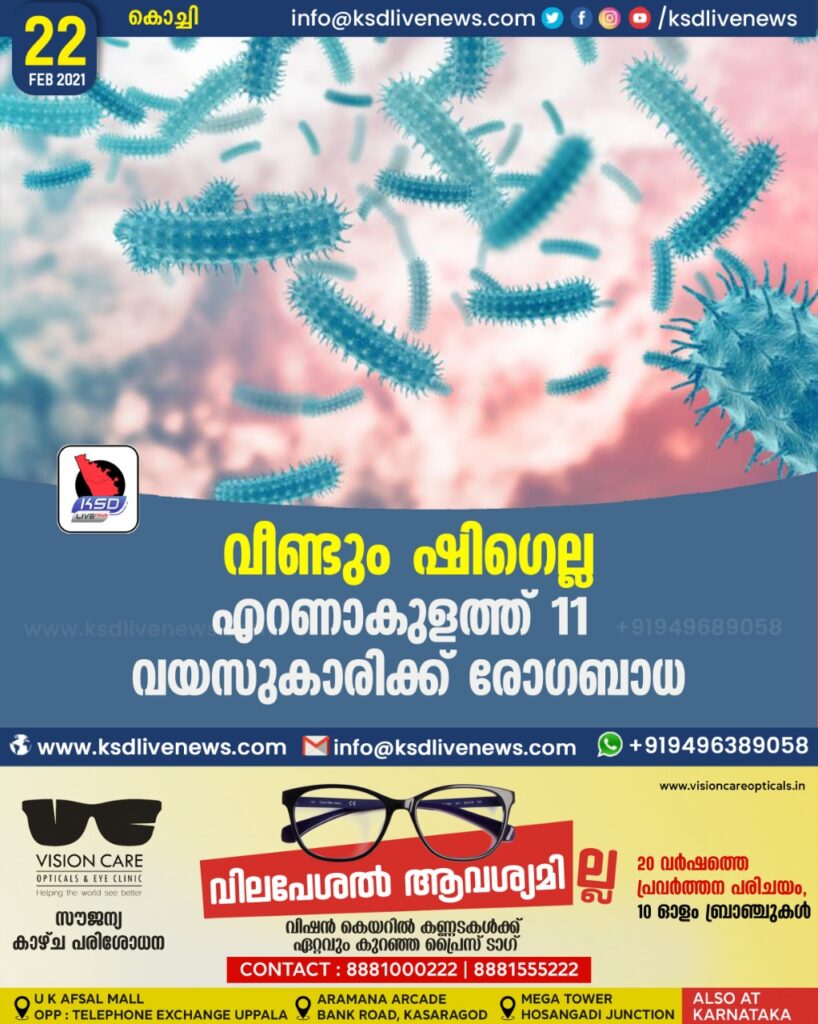 വീണ്ടും ഷിഗെല്ല : എറണാകുളത്ത് 11 വയസുകാരിക്ക് രോഗബാധ