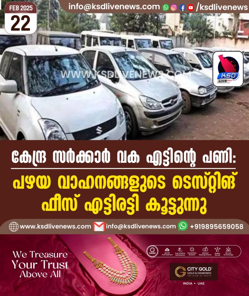 കേന്ദ്ര സര്‍ക്കാര്‍ വക എട്ടിന്റെ പണി: പഴയ വാഹനങ്ങളുടെ ടെസ്റ്റിങ് ഫീസ് എട്ടിരട്ടി കൂട്ടുന്നു