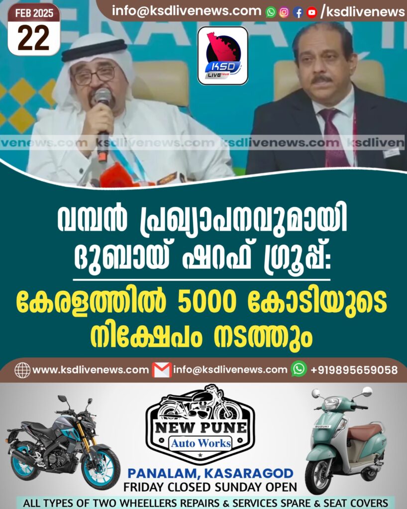 വമ്പൻ പ്രഖ്യാപനവുമായി ദുബായ് ഷറഫ് ഗ്രൂപ്പ്; കേരളത്തിൽ 5000 കോടിയുടെ നിക്ഷേപം നടത്തും