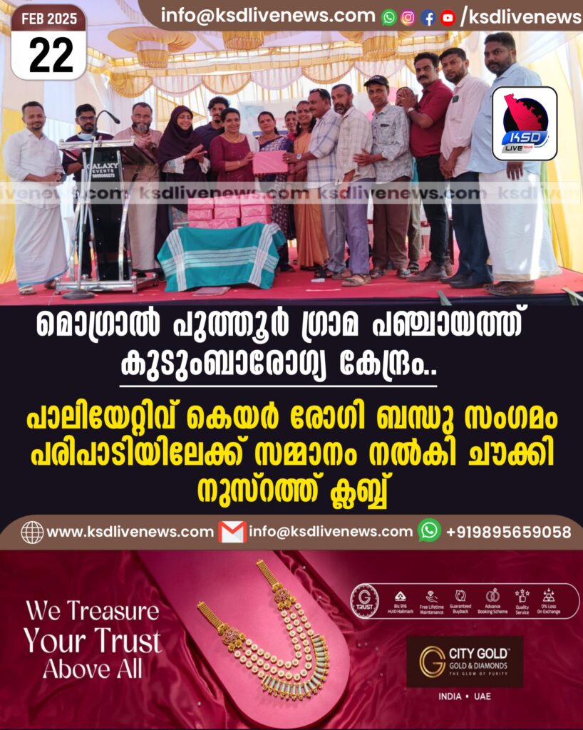 മൊഗ്രാൽ പുത്തൂർ ഗ്രാമ പഞ്ചായത്ത്. കുടുംബാരോഗ്യ കേന്ദ്രം..പാലിയേറ്റിവ് കെയർ രോഗി ബന്ധു സംഗമം പരിപാടിയിലേക്ക് സമ്മാനം നൽകി ചൗക്കി നുസ്റത്ത് ക്ലബ്ബ്