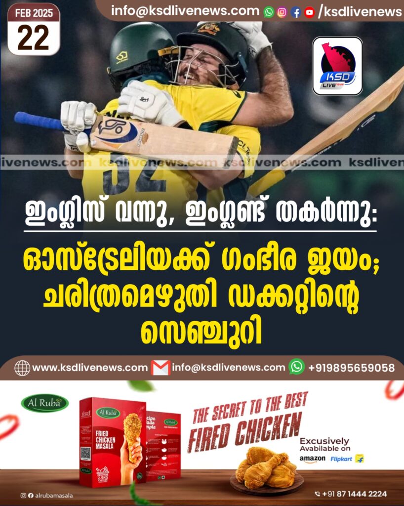 ഇംഗ്ലിസ് വന്നു, ഇംഗ്ലണ്ട് തകര്ന്നു: ഓസ്ട്രേലിയക്ക് ഗംഭീര ജയം; ചരിത്രമെഴുതി ഡക്കറ്റിന്റെ സെഞ്ചുറി