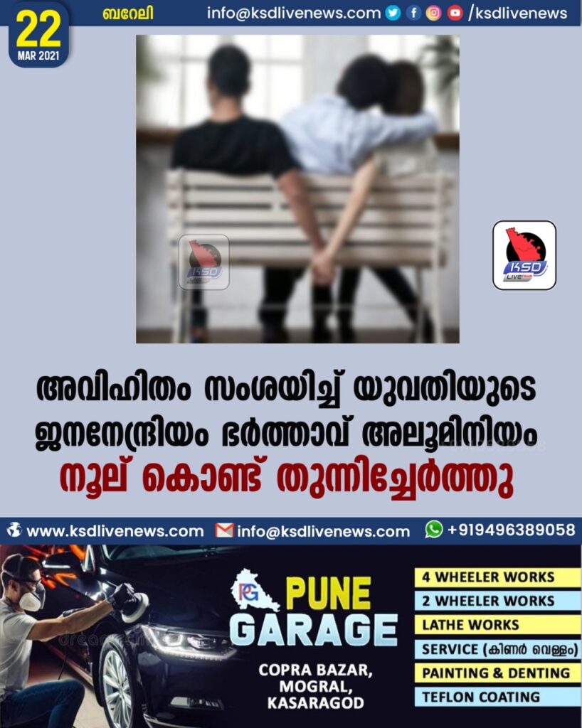 അവിഹിതം സംശയിച്ച് യുവതിയുടെ ജനനേന്ദ്രിയം ഭര്ത്താവ് അലൂമിനിയം നൂല് കൊണ്ട് തുന്നിച്ചേര്ത്തു