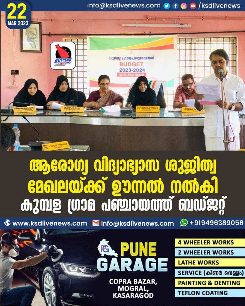 ആരോഗ്യ വിദ്യാഭ്യാസ ശുജിത്വ മേഖലയ്ക്ക് ഊന്നൽ നൽകി കുമ്പള ഗ്രാമ പഞ്ചായത്ത് ബഡ്ജറ്റ്