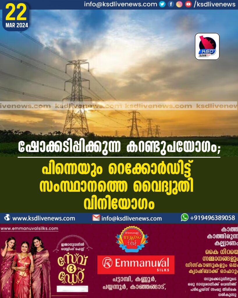 ഷോക്കടിപ്പിക്കുന്ന കറണ്ടുപയോഗം; പിന്നെയും റെക്കോര്ഡിട്ട് സംസ്ഥാനത്തെ വൈദ്യുതി വിനിയോഗം