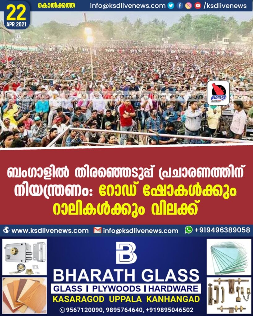 ബംഗാളില് തിരഞ്ഞെടുപ്പ് പ്രചാരണത്തിന് നിയന്ത്രണം: റോഡ് ഷോകള്ക്കും റാലികള്ക്കും വിലക്ക്