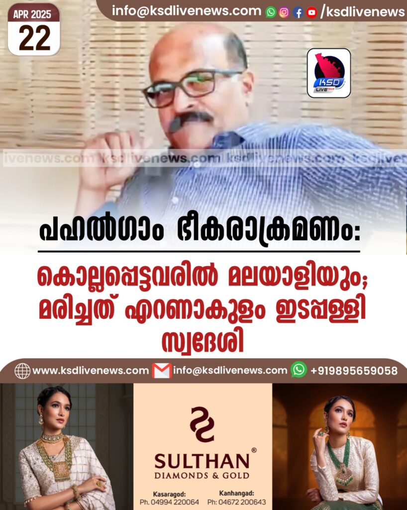 പഹൽഗാം ഭീകരാക്രമണം: കൊല്ലപ്പെട്ടവരിൽ മലയാളിയും, മരിച്ചത് എറണാകുളം ഇടപ്പള്ളി സ്വദേശി