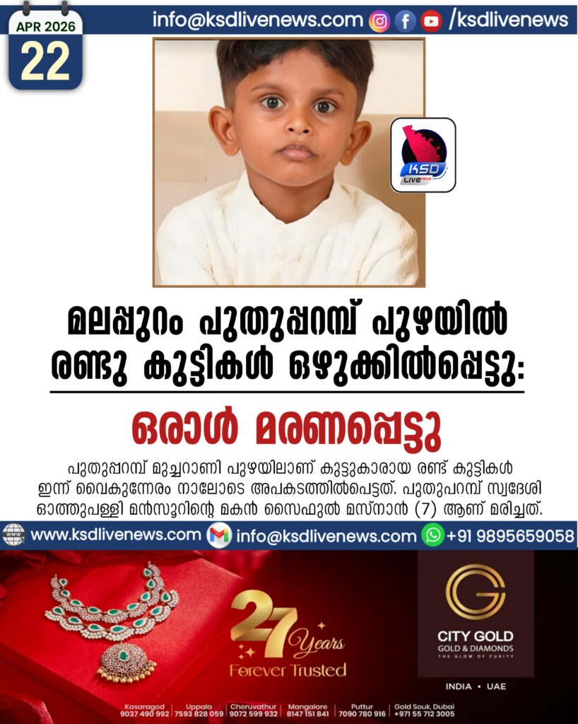 മലപ്പുറം പുതുപ്പറമ്പ് പുഴയില് രണ്ടു കുട്ടികള് ഒഴുക്കില്പ്പെട്ടു; ഒരാള് മരണപ്പെട്ടു