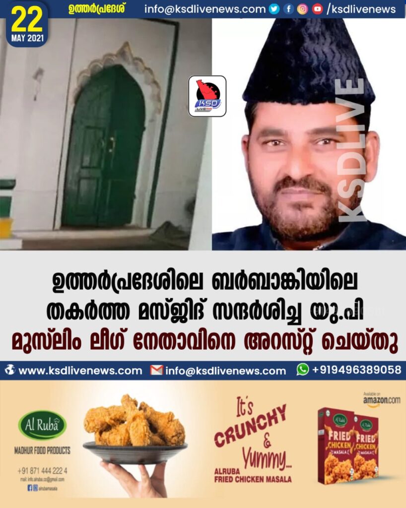 ഉത്തർപ്രദേശിലെ ബർബാങ്കിയിലെ തകർത്ത മസ്ജിദ് സന്ദർശിച്ച യു.പി മുസ്ലിംലീഗ് നേതാവിനെ അറസ്റ്റ് ചെയ്തു