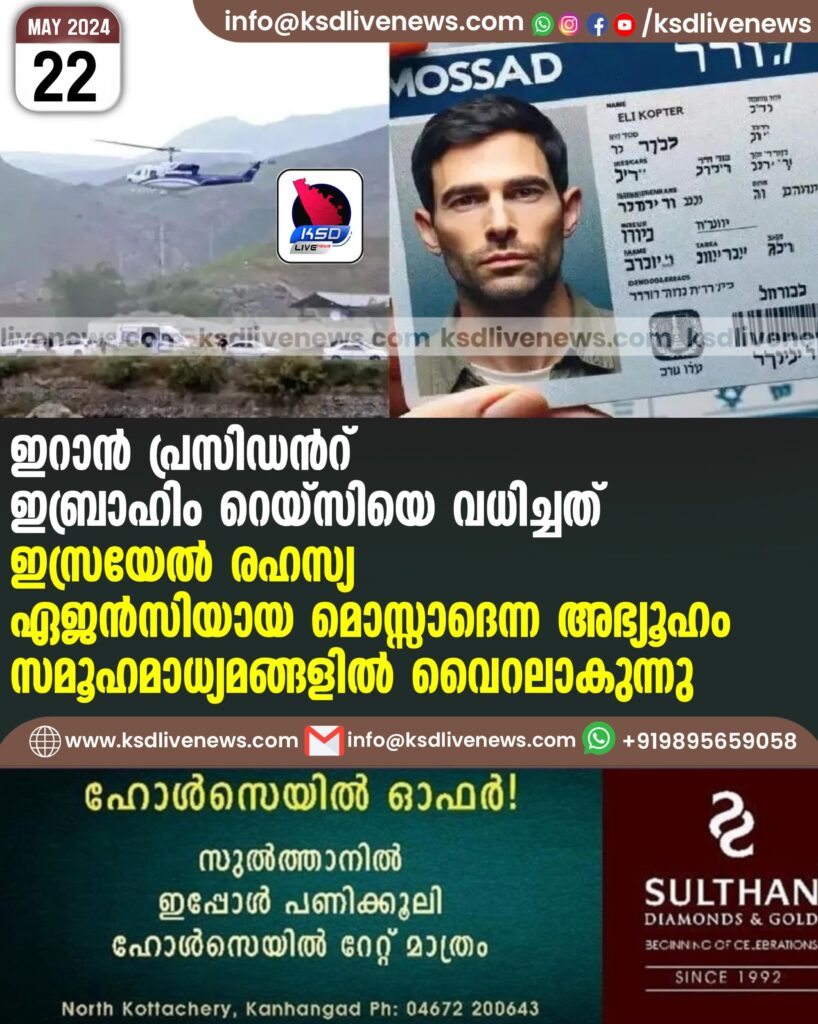 ഇറാന്‍ പ്രസിഡന്‍റ് ഇബ്രാഹിം റെയ്സിയെ വധിച്ചത് ഇസ്രയേല്‍ രഹസ്യ ഏജന്‍സിയായ മൊസ്സാദെന്ന അഭ്യൂഹം സമൂഹമാധ്യമങ്ങളില്‍ വൈറലാകുന്നു
