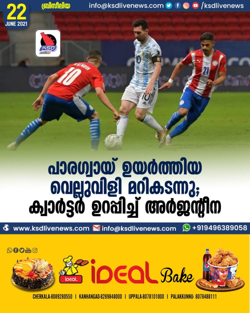 പാരഗ്വായ് ഉയര്‍ത്തിയ വെല്ലുവിളി മറികടന്നു; ക്വാര്‍ട്ടര്‍ ഉറപ്പിച്ച് അര്‍ജന്റീന