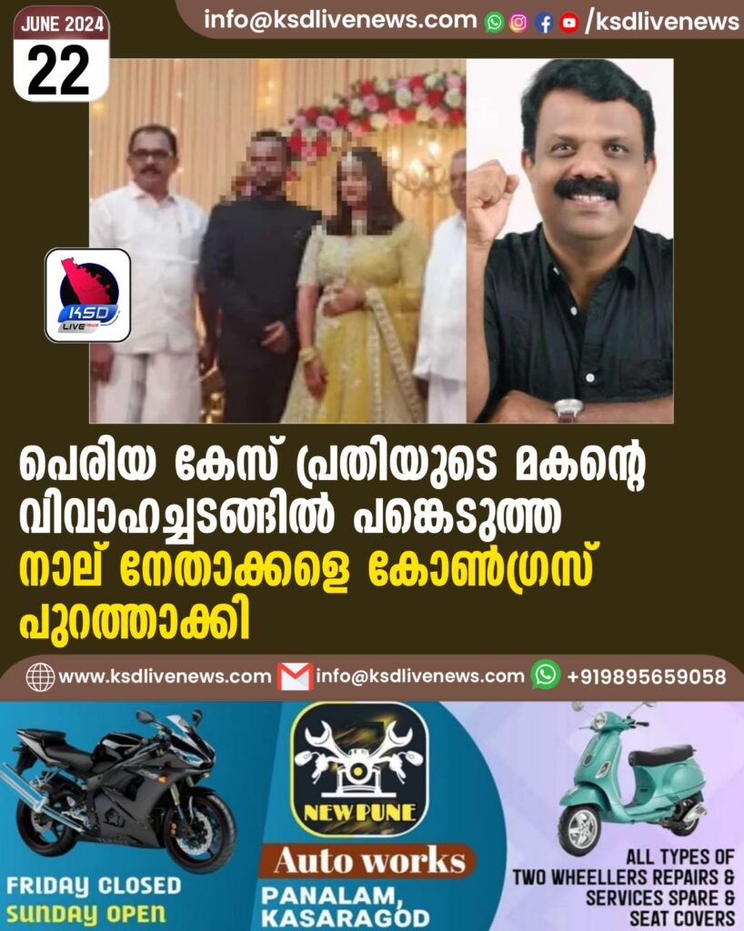 പെരിയ കേസ് പ്രതിയുടെ മകന്റെ വിവാഹച്ചടങ്ങില് പങ്കെടുത്ത നാല് നേതാക്കളെ കോണ്ഗ്രസ് പുറത്താക്കി