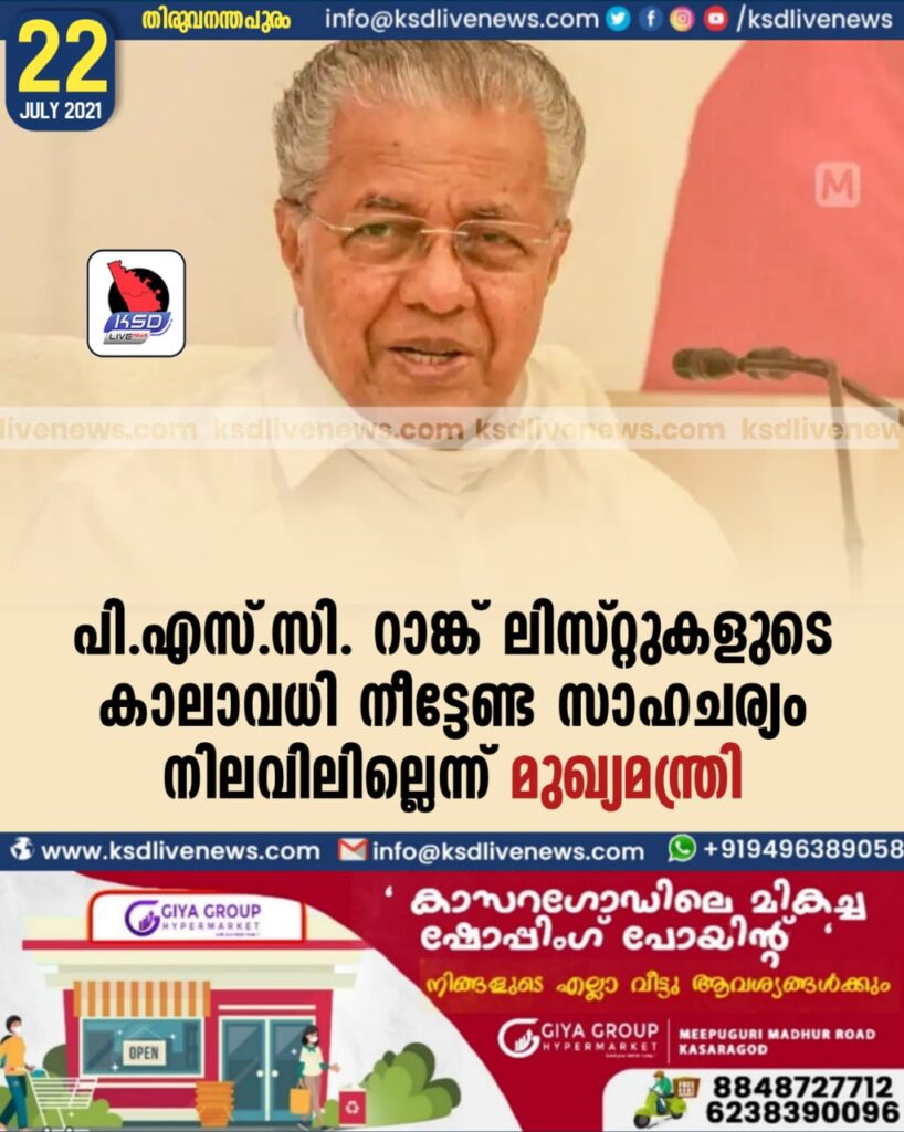 പി.എസ്.സി. റാങ്ക് ലിസ്റ്റുകളുടെ കാലാവധി നീട്ടേണ്ട സാഹചര്യം