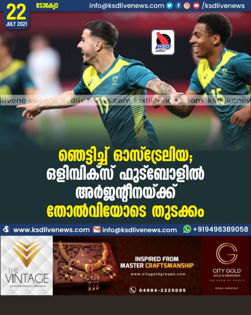 ഞെട്ടിച്ച് ഓസ്‌ട്രേലിയ: ഒളിമ്പിക്‌സ് ഫുട്‌ബോളില്‍ അര്‍ജന്റീനയ്ക്ക് തോല്‍വിയോടെ തുടക്കം