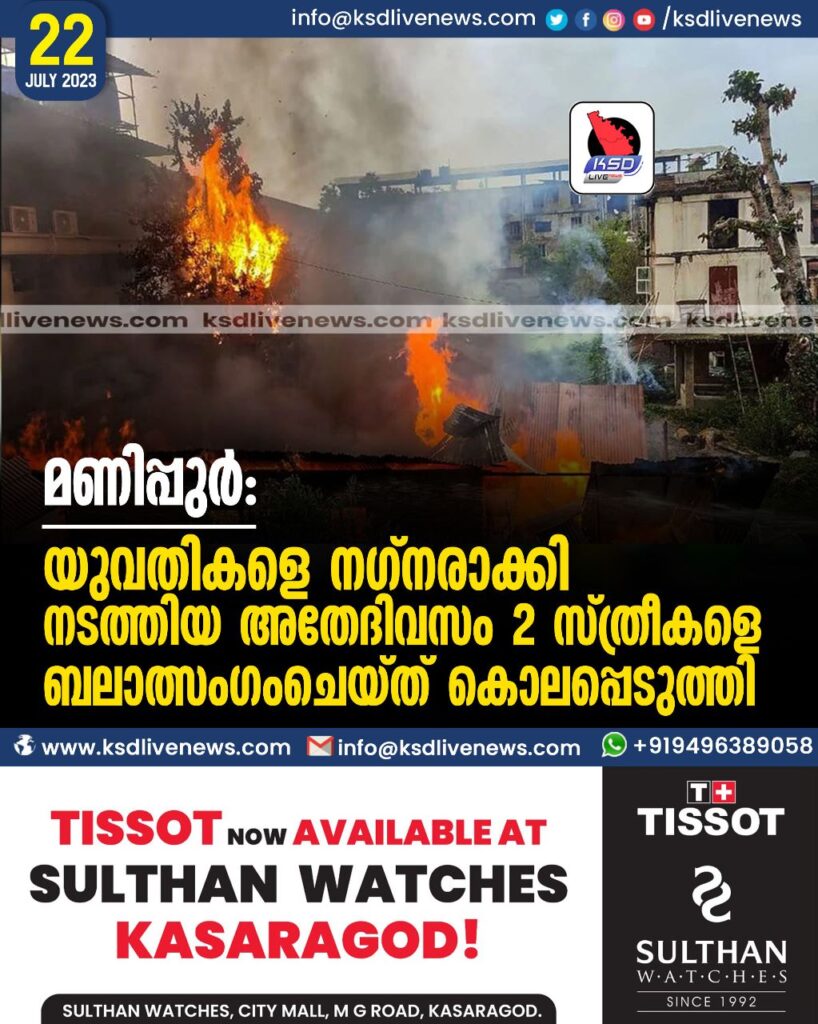 മണിപ്പുര്‍: യുവതികളെ നഗ്നരാക്കി നടത്തിയ അതേദിവസം 2 സ്ത്രീകളെ ബലാത്സംഗംചെയ്ത് കൊലപ്പെടുത്തി