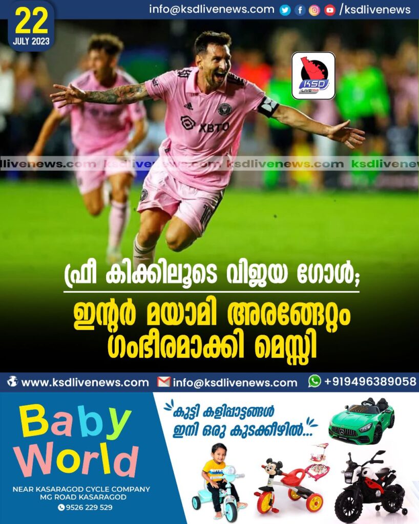 ഫ്രീ കിക്കിലൂടെ വിജയ ഗോള്‍; ഇന്റര്‍ മയാമി അരങ്ങേറ്റം ഗംഭീരമാക്കി മെസ്സി
