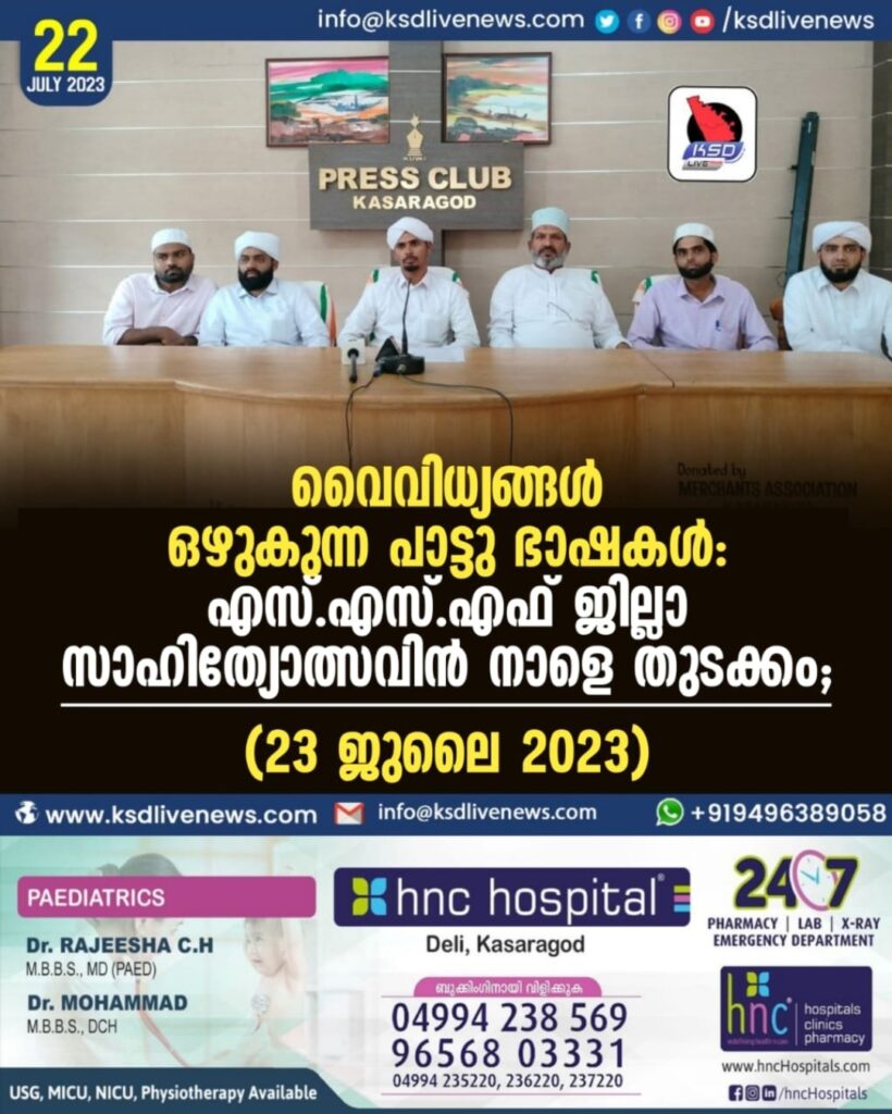 എസ്.എസ്.എഫ് ജില്ലാ സാഹിത്യോത്സവിന്‍ നാളെ തുടക്കം; (23 ജുലൈ 2023)