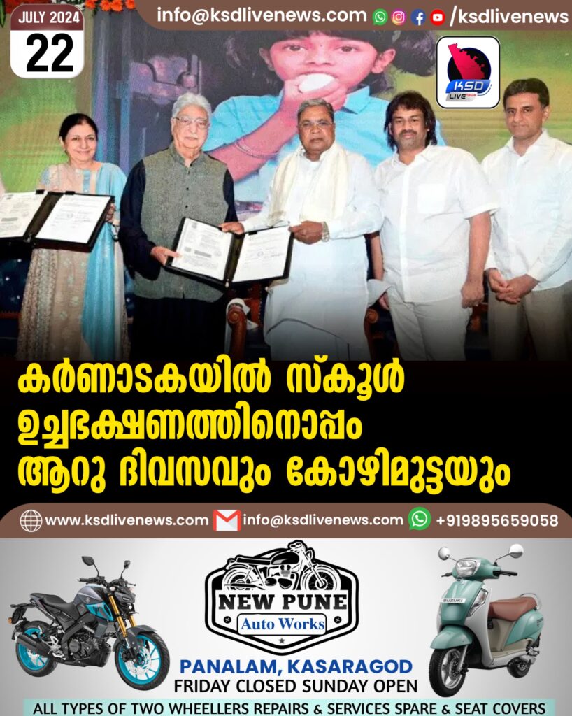 കര്ണാടകയില് സ്കൂള് ഉച്ചഭക്ഷണത്തിനൊപ്പം ആറു ദിവസവും കോഴിമുട്ടയും