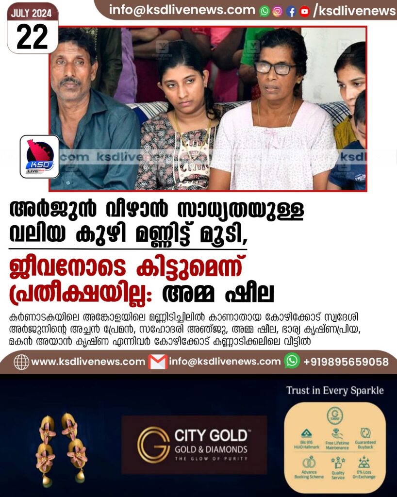 അർജുൻ വീഴാൻ സാധ്യതയുള്ള വലിയ കുഴി മണ്ണിട്ട് മൂടി, ജീവനോടെ കിട്ടുമെന്ന് പ്രതീക്ഷയില്ല’: അമ്മ ഷീല