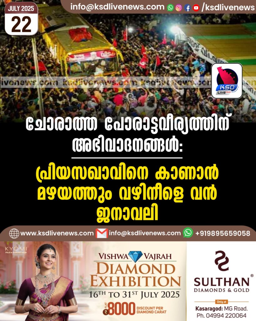 ചോരാത്ത പോരാട്ടവീര്യത്തിന് അഭിവാദനങ്ങൾ: പ്രിയസഖാവിനെ കാണാന് മഴയത്തും വഴിനീളെ വൻ ജനാവലി