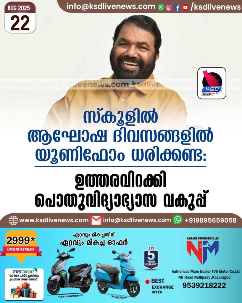 സ്കൂളില് ആഘോഷ ദിവസങ്ങളില് യൂണിഫോം ധരിക്കണ്ട: ഉത്തരവിറക്കി പൊതുവിദ്യാഭ്യാസ വകുപ്പ്