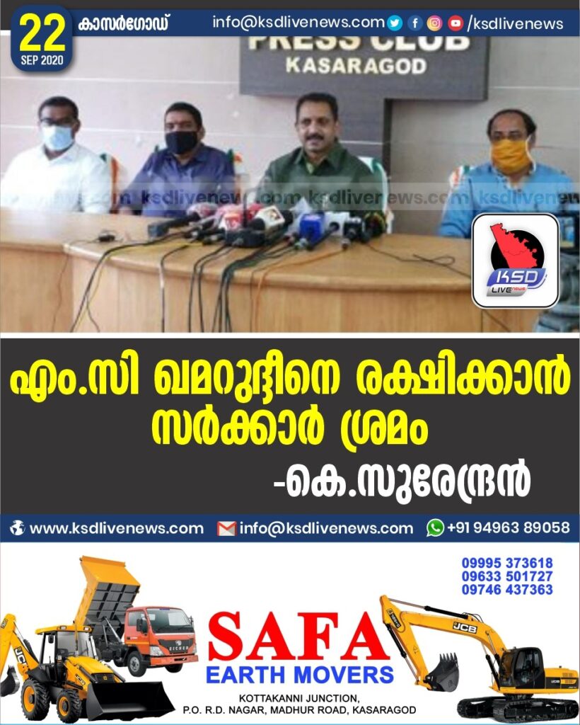 എം.സി ഖമറുദ്ദീനെ രക്ഷിക്കാന്‍ സര്‍ക്കാര്‍ ശ്രമം-കെ.സുരേന്ദ്രന്‍