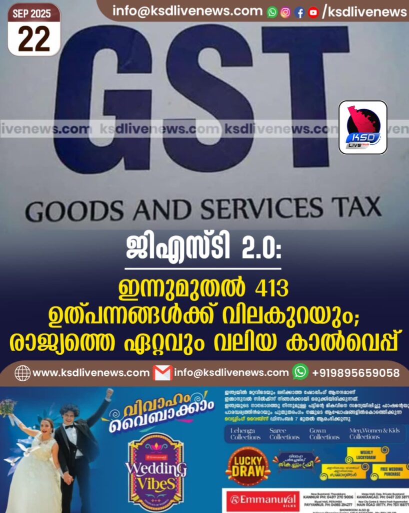 ജിഎസ്ടി 2.0: ഇന്നുമുതൽ 413 ഉത്പന്നങ്ങൾക്ക് വിലകുറയും; ‘രാജ്യത്തെ ഏറ്റവും വലിയ കാൽവെപ്പ്